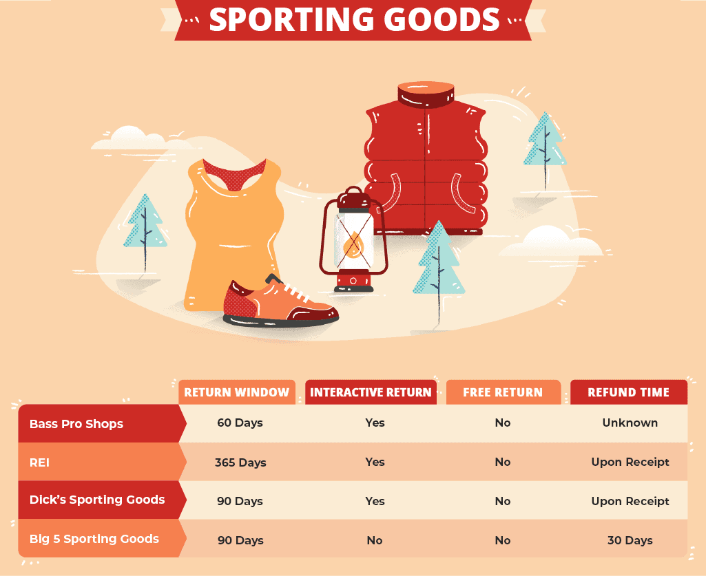 The top sporting goods companies in the U.S. don’t offer free shipping on returns, which is unusual in ecommerce. However, all four of these retailers have many brick-and-mortar locations where customers can take back online purchases free of charge.